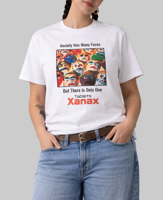 Anxiety Has Many Faces Xanax 90's Vintage Graphic T-shirt.