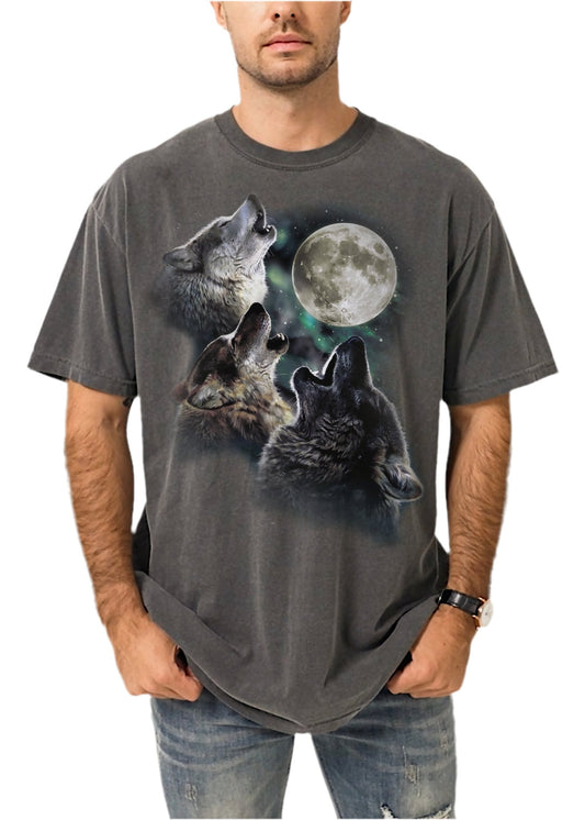 Retro Wolves and The Moon Vintage Graphic Tee.