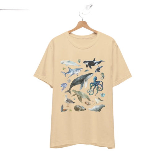 Vintage Ocean Animals Water Color Retro Graphic T-shirt