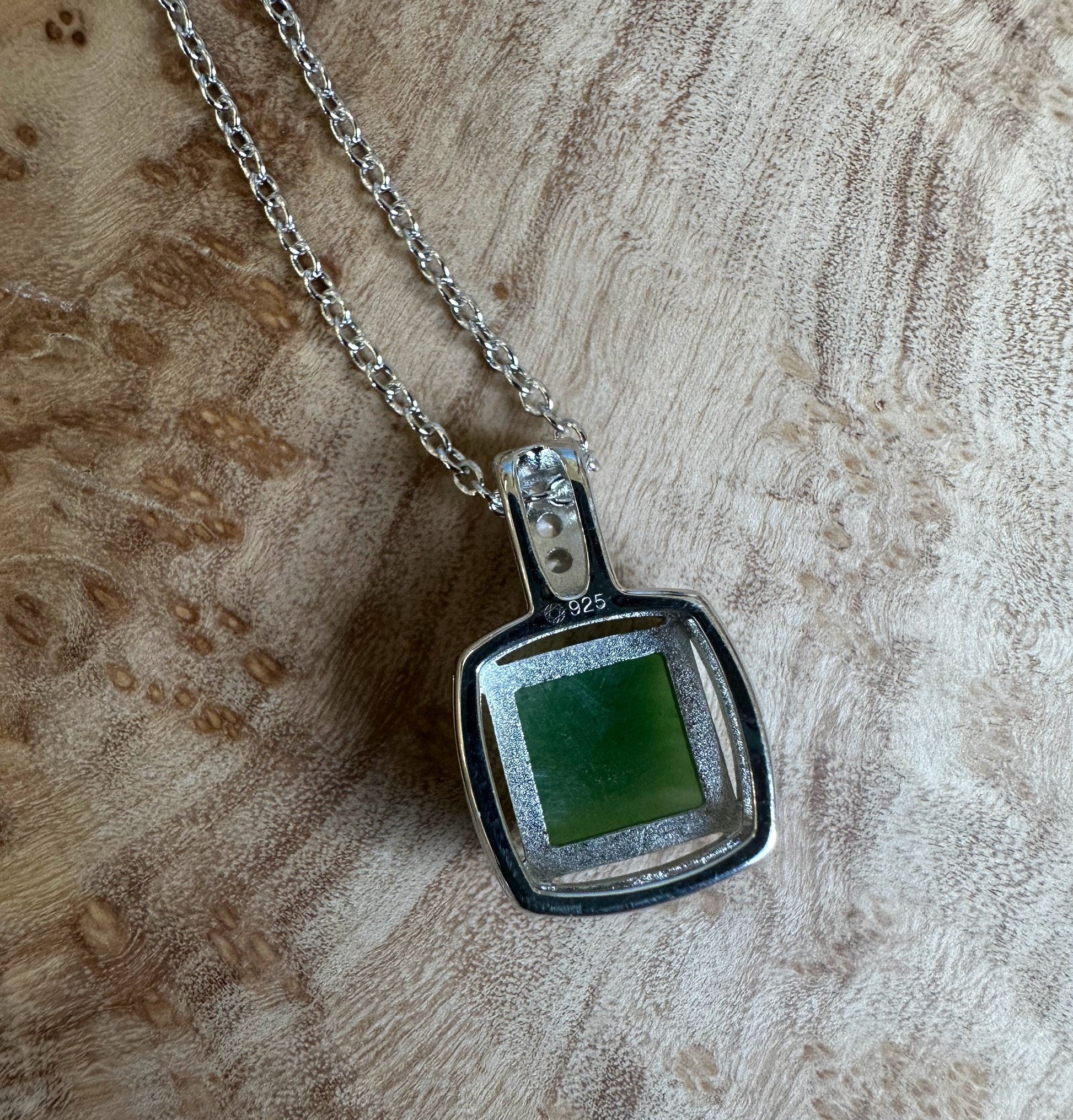 Natural Canadian Nephrite Jade and Sterling Silver pendant.