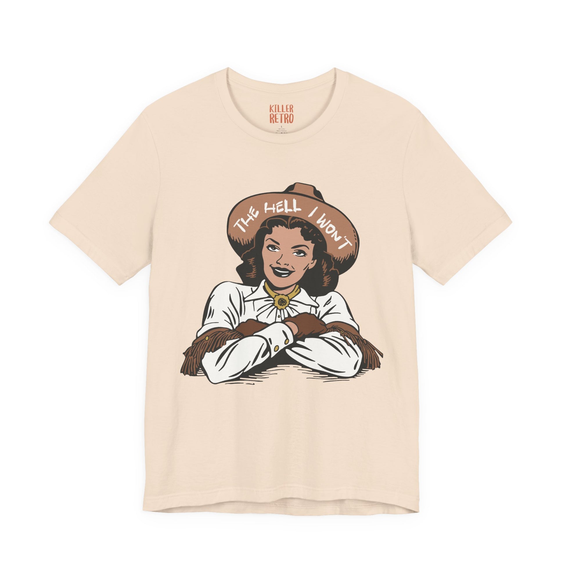 Cowgirl Graphic Tee — "The Hell I Won't" Retro Western Shirt
