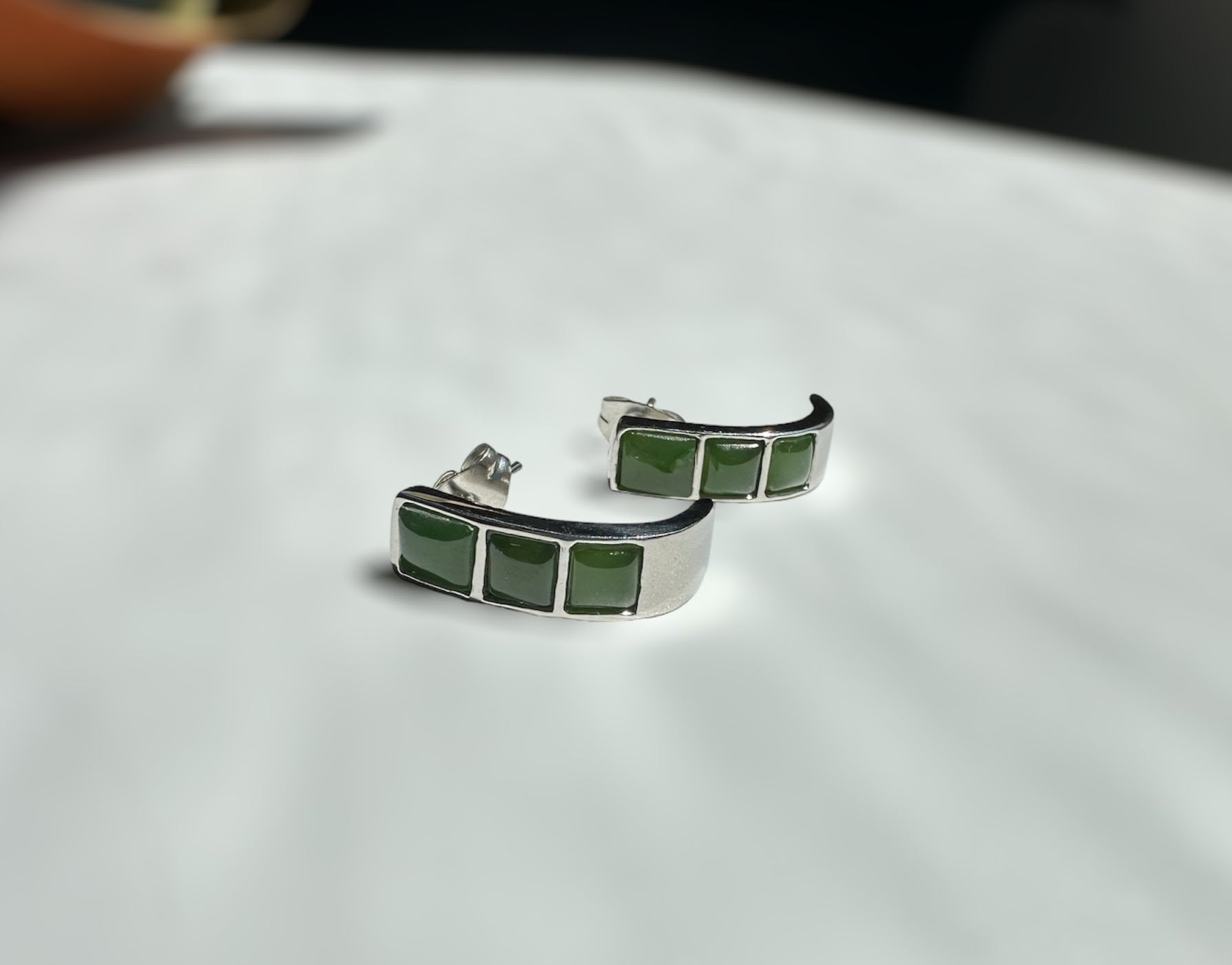 Canadian Nephrite Jade Earring set in Hypoallergenic stainless steel