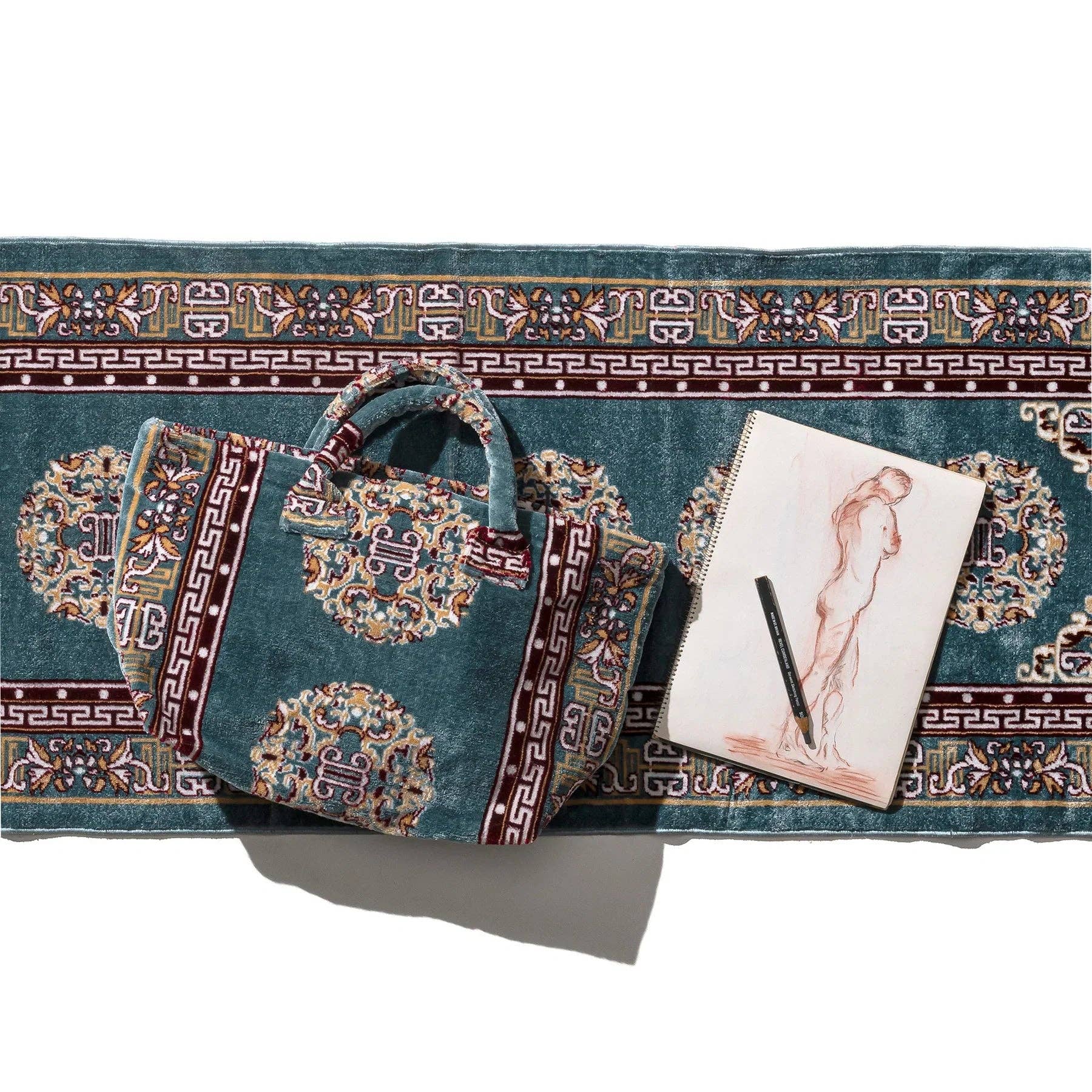 This unique rug bag is crafted from a repurposed rug, echoing the charm of 19th-century carpet bags that were once popular in Europe and America. Originally made from leftover materials, these bags served a dual purpose—storing travel essentials while keeping you cozy in unheated vehicles. Combining practicality with a touch of vintage flair, this bag will add character to any look.