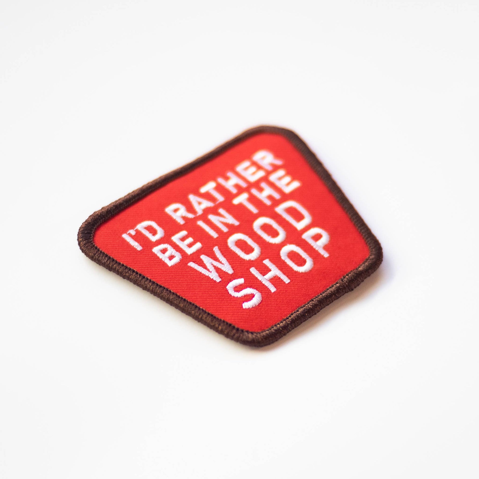Introducing our I'd Rather Be in the Wood Shop patch—a must-have for woodworking enthusiasts! This 2x3-inch embroidered patch features bold red, white, and brown stitching, making a statement wherever you place it. Whether you're crafting masterpieces or just daydreaming about sawdust and freshly cut lumber, this patch is the perfect addition to your favorite jacket, tool bag, or apron. Easy to iron on and built to last, it’s a nod to the timeless craft of woodworking.