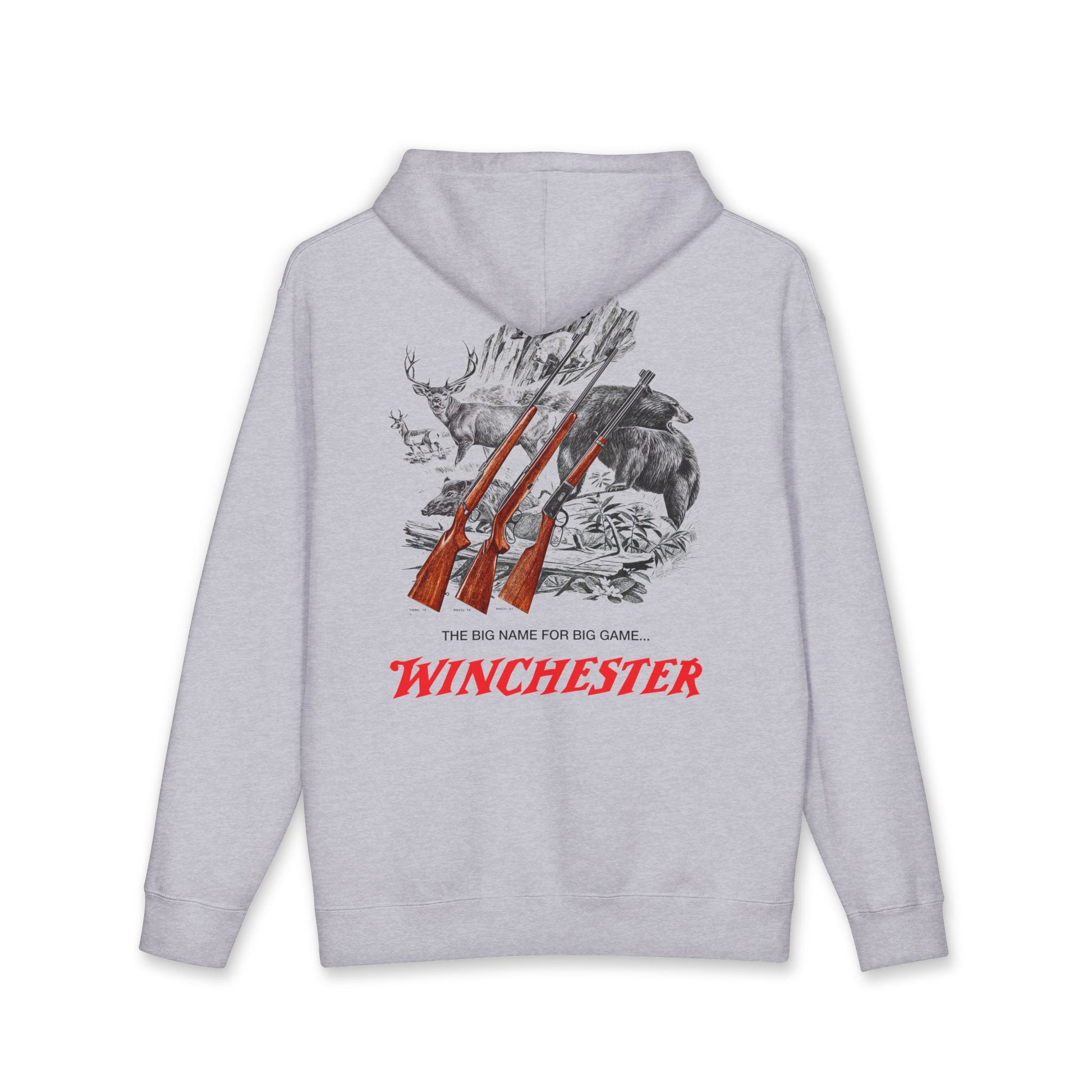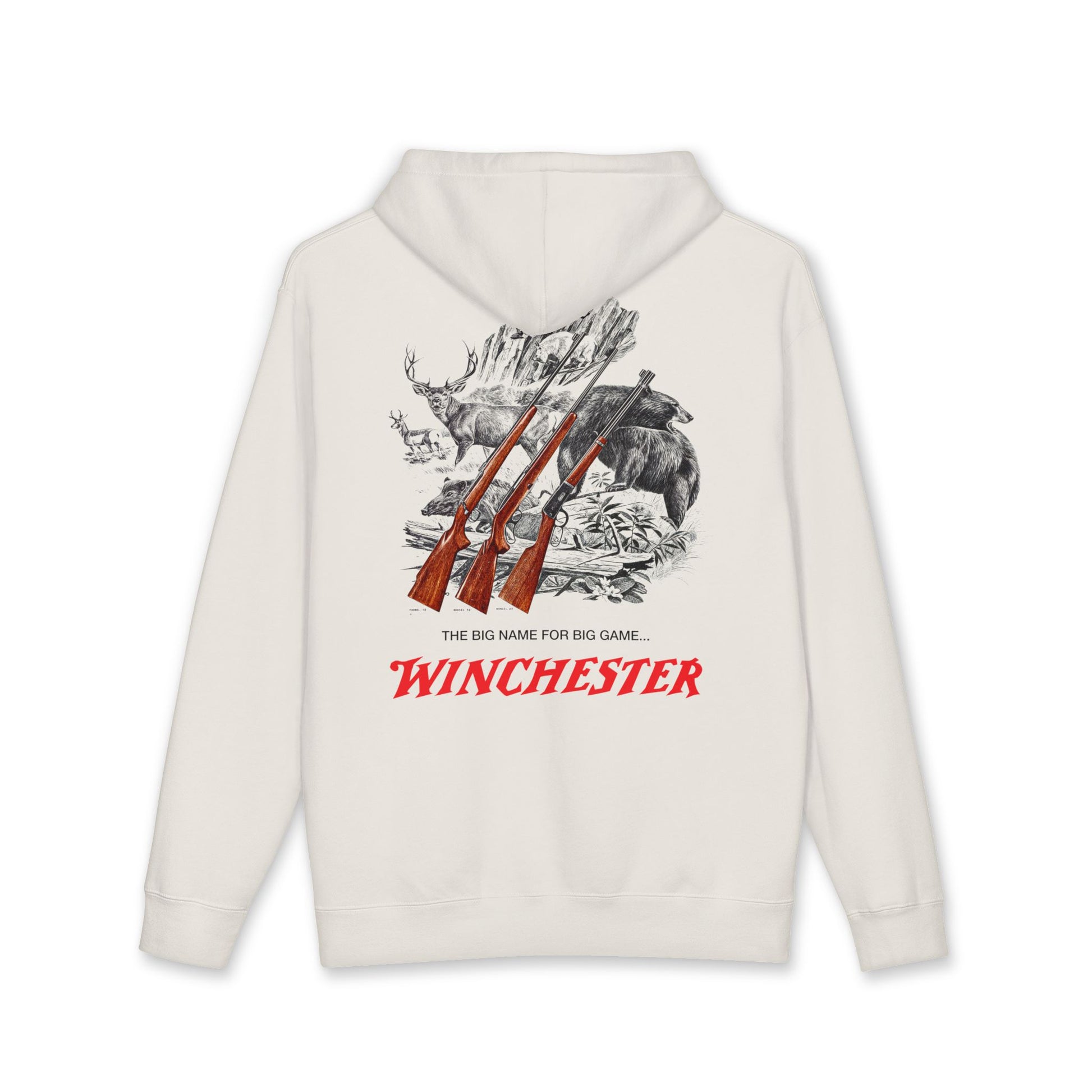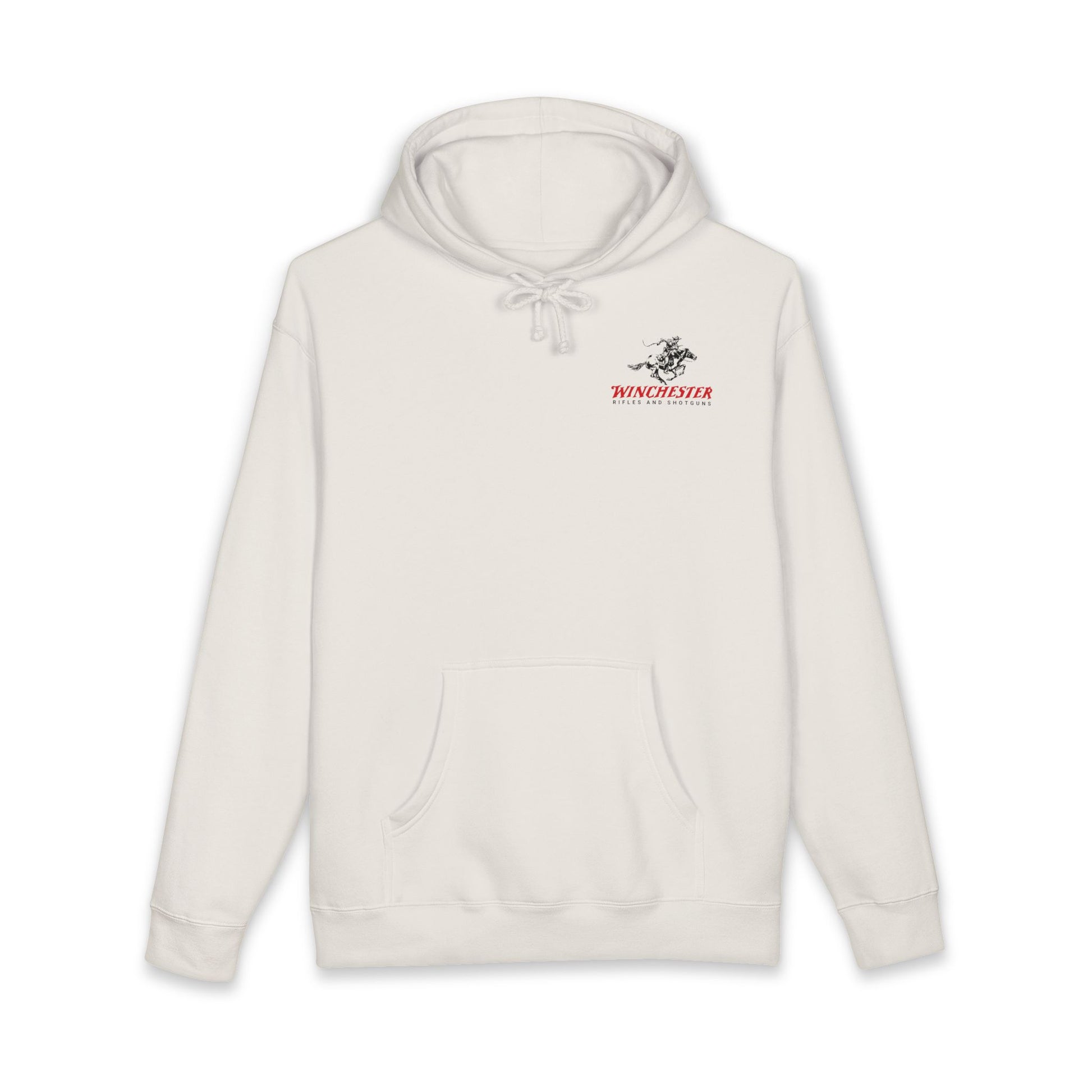 We restored 70's riffle ad and printed on this 10oz heavyweight hooded sweatshirt.