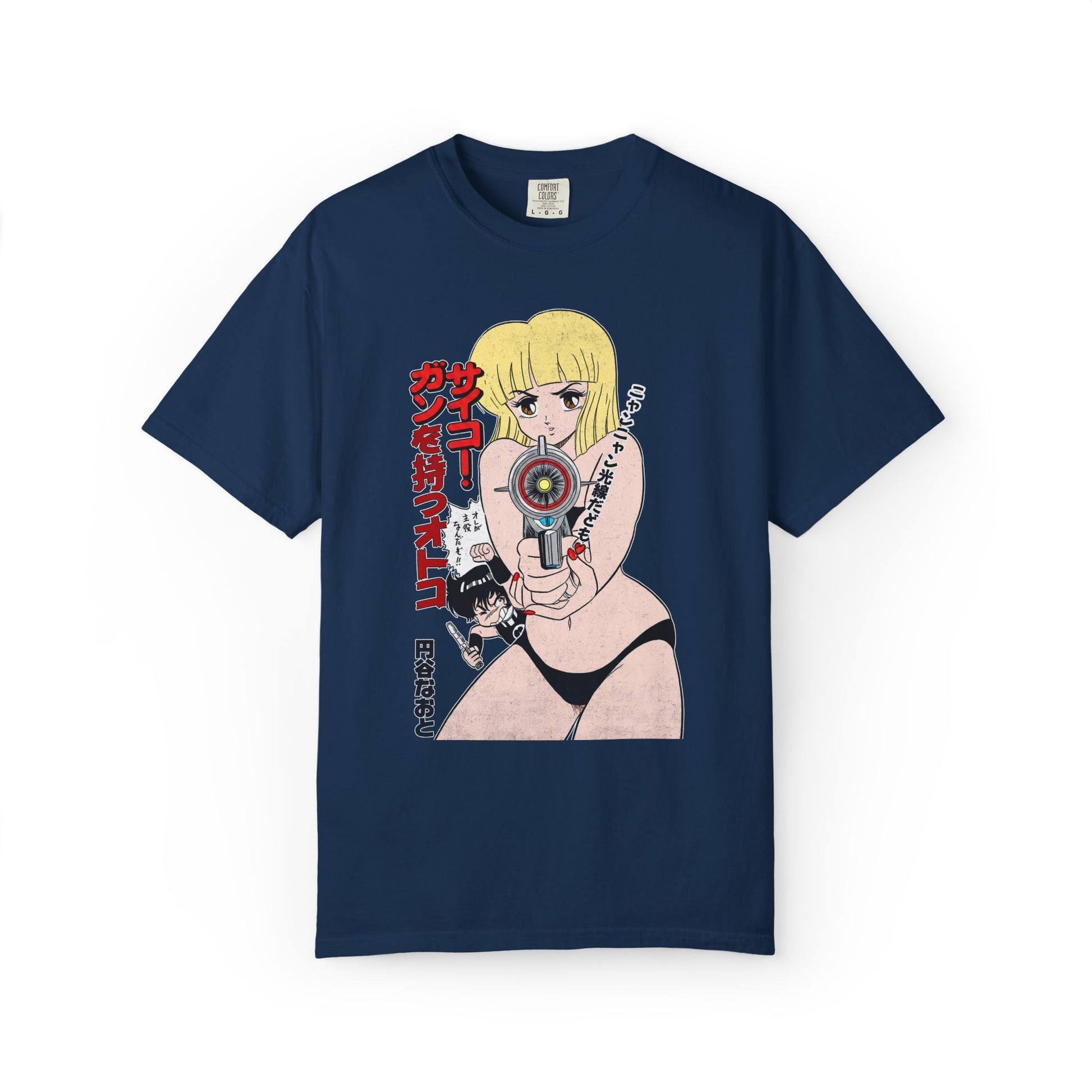 Vintage graphic T-shirt featuring a restored manga cover from the 60's. This unique retro Japanese anime tee exudes nostalgia and is a perfect gift for manga lovers.
