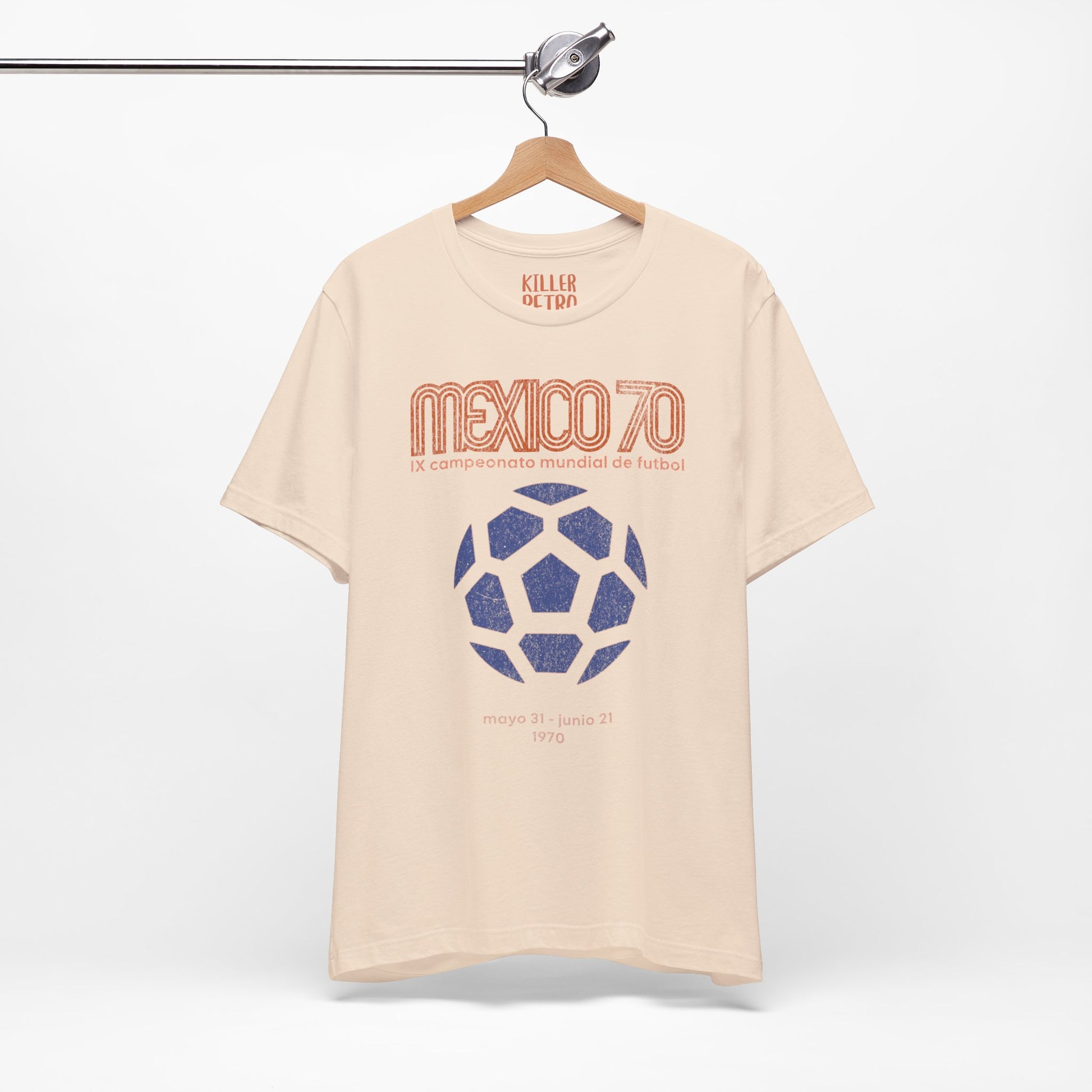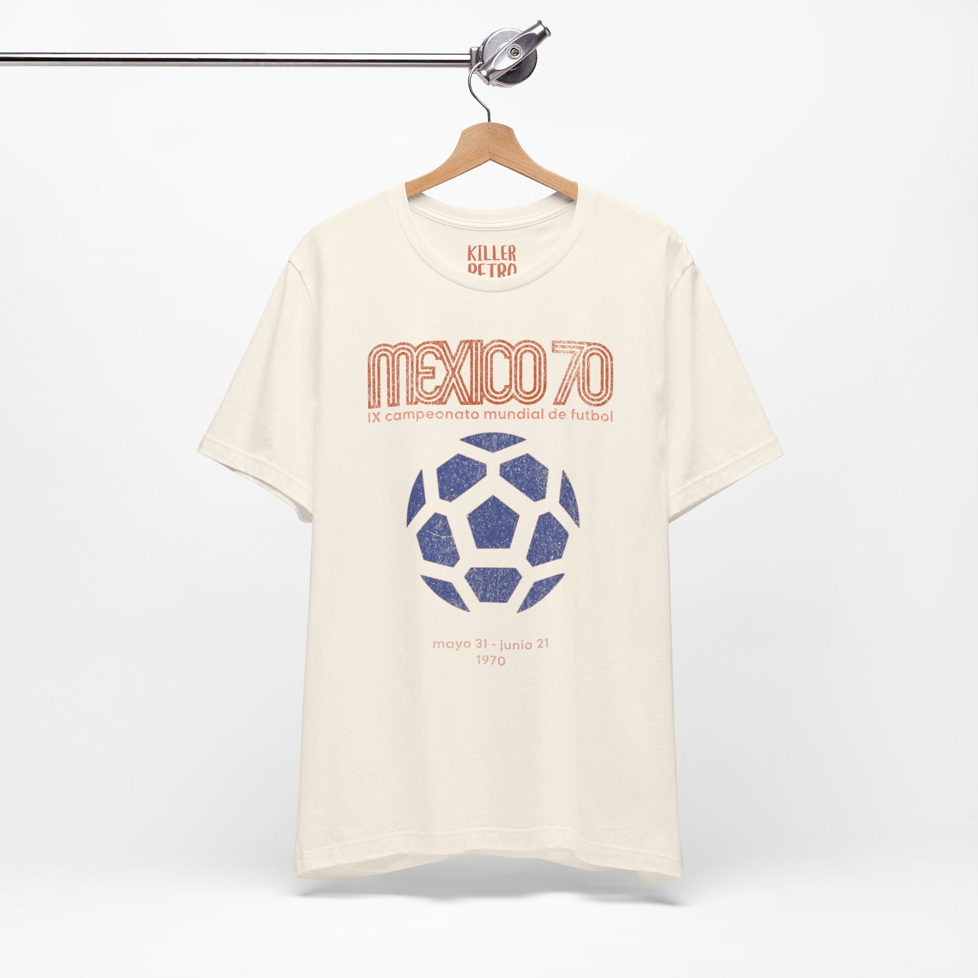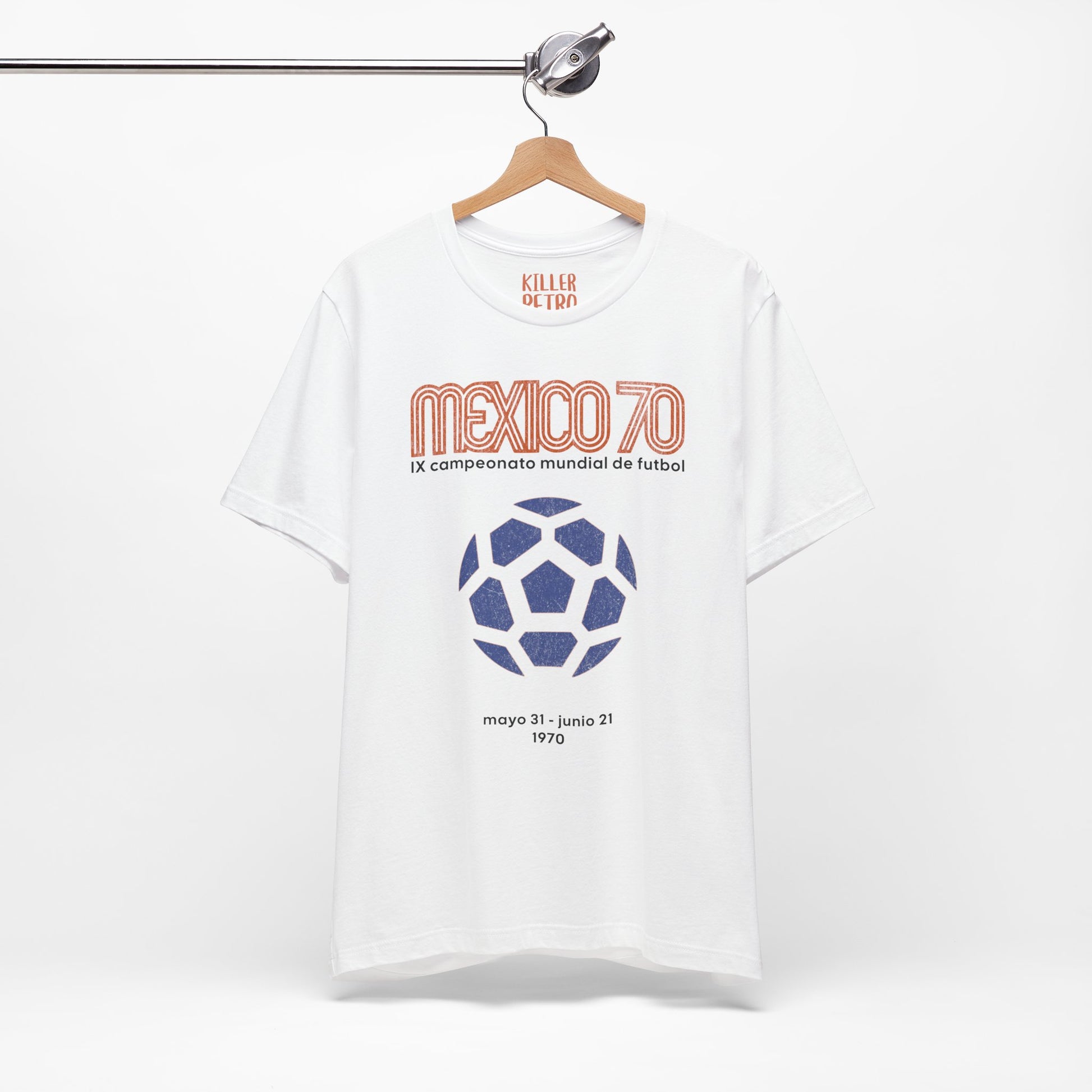 This Vintage Mexico 70 World Cup Soccer—Football Shirt is a must-have for any soccer fan. The retro graphic tee is a unisex design that celebrates the 1970 World Cup, which took place in Mexico. Whether you're hitting the field or cheering from the sidelines, this soccer fan t-shirt is sure to make a statement. Add this unique piece to your collection today!